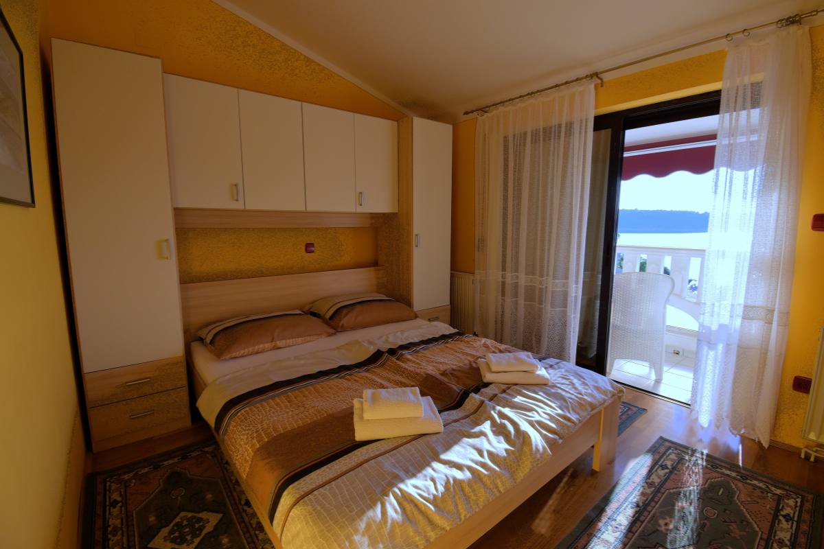 Sadrži jednu dvoposteljnu sobu, kupaonicu s tuš kabinom / wc, potpuno opremljena kuhinja s blagavaonicom, balkon s pogledom na more, sat/tv. Posteljina i ručnici nalaze se u apartmanu.