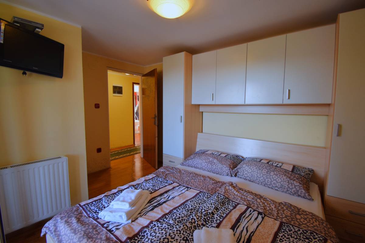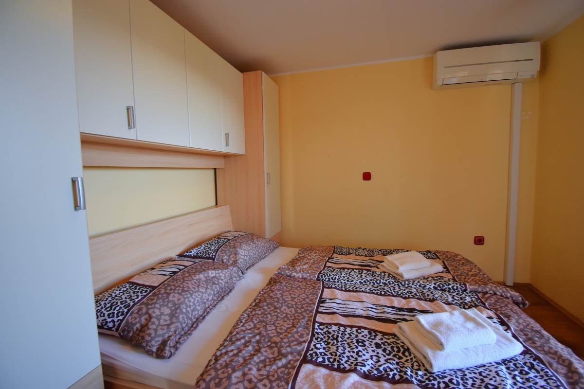 Sastoji se od dvije dvoposteljne sobe, dvije kupaonice / wc, potpuno opremljena kuhinja sa blagavaonicom, balkon s pogledom na more. Posteljina i ručnici nalaze se u apartmanu.